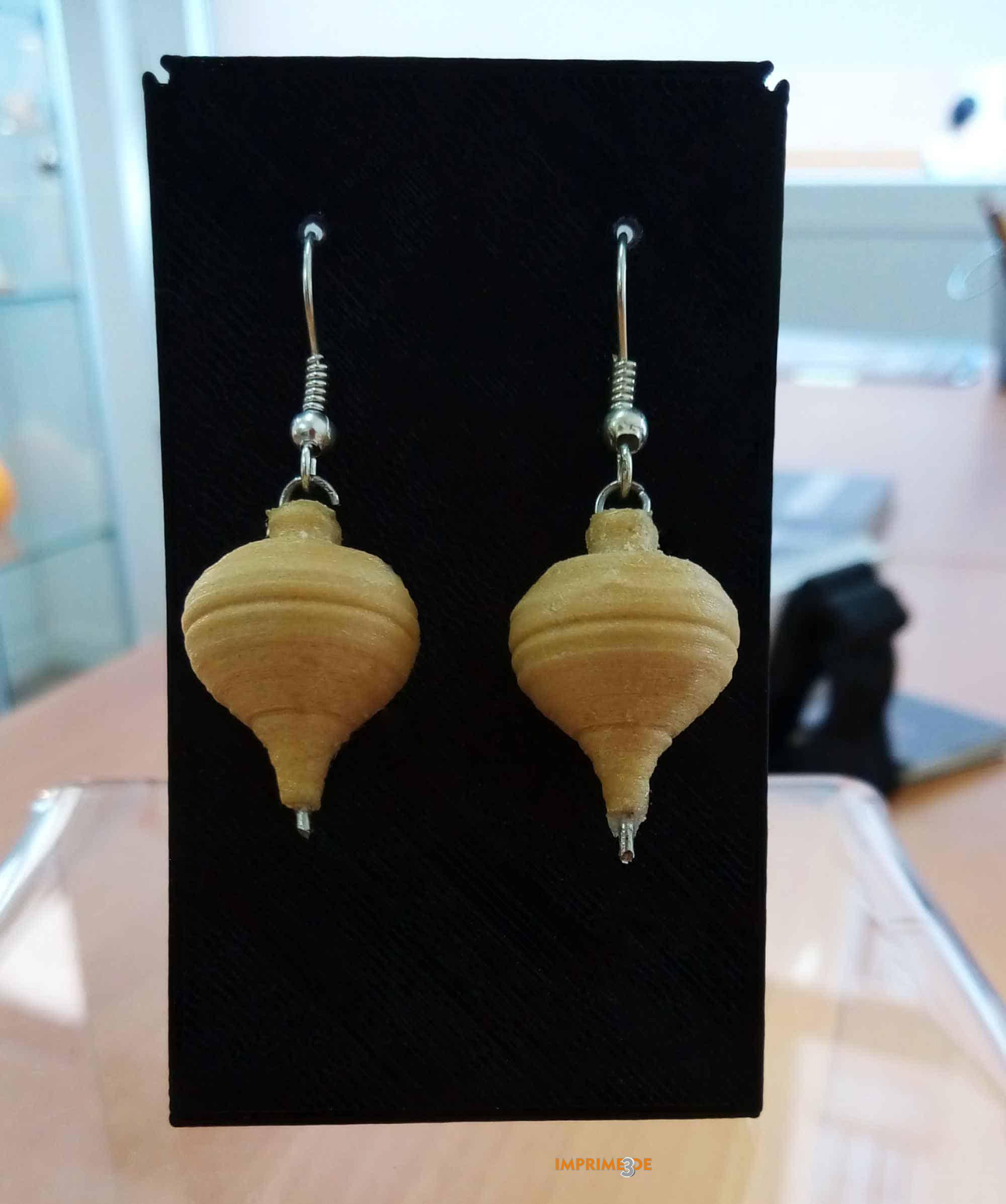 Brincos peóns ou buxainas deseñados por Imprimetresde en homenaxe ao xoguete tradicional do mesmo nome. Dito xoguete consiste nunha peza de madeira de forma cónica, rematada nunha punta de metal pola parte inferior e que se fai bailar por medio dun cordel. Asemesmo, imitamos a peza facéndoaa en madeira imprimíble.