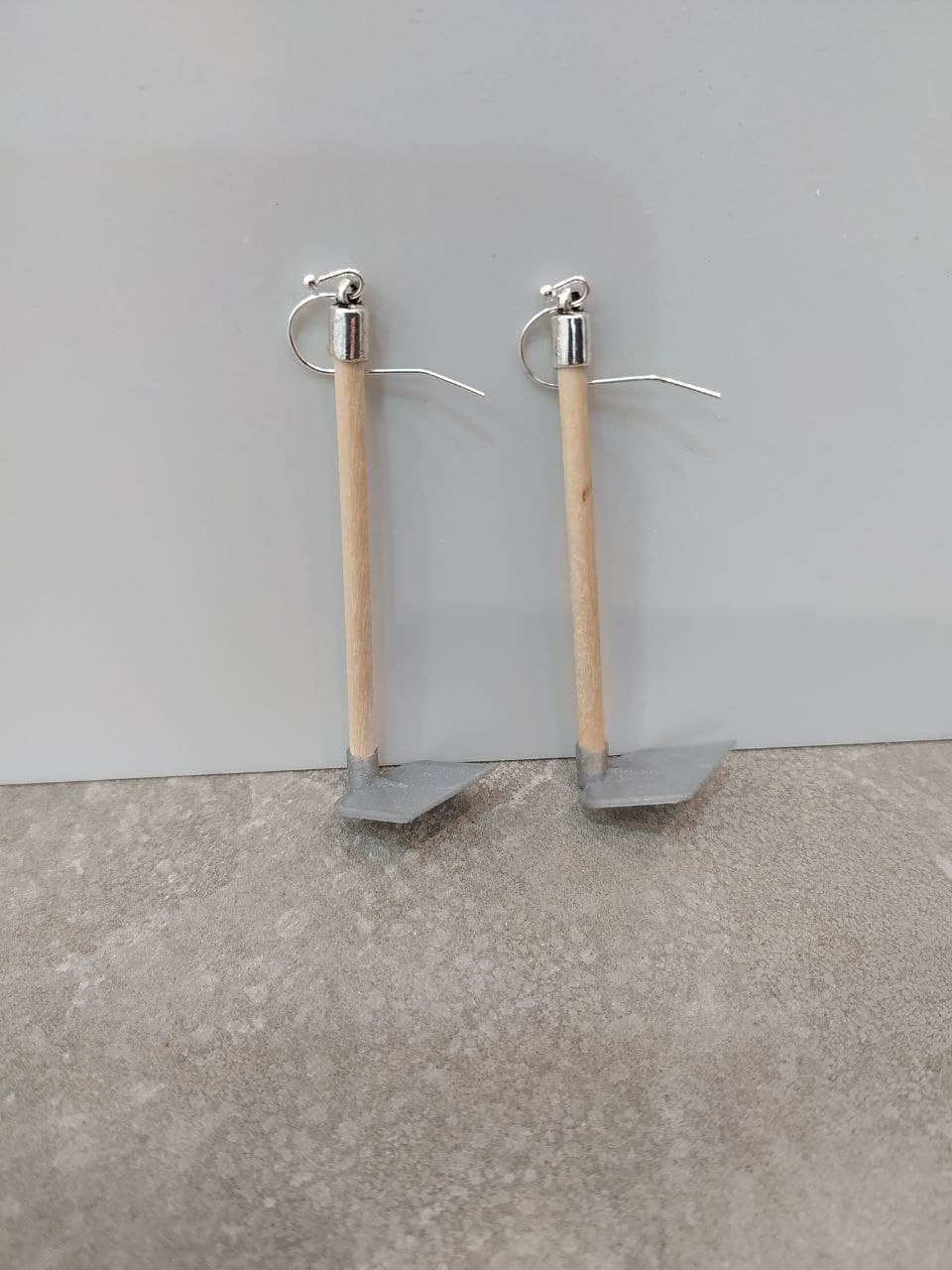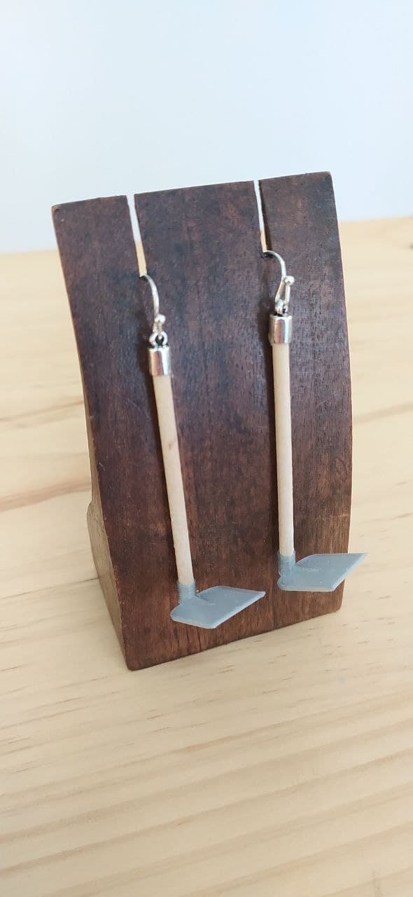 Brincos Sachos deseñados pola equipa de Imprimetresde. Orixinais brincos de sachos , con mango en madeira. Ferramenta tamén coñecida como aixada que consiste nunha peza de metal, ferro polo xeral, en forma de pa aguzada por un lado e unida a un mango perpendicular, e que se utiliza para cavar ou remexer a terra.