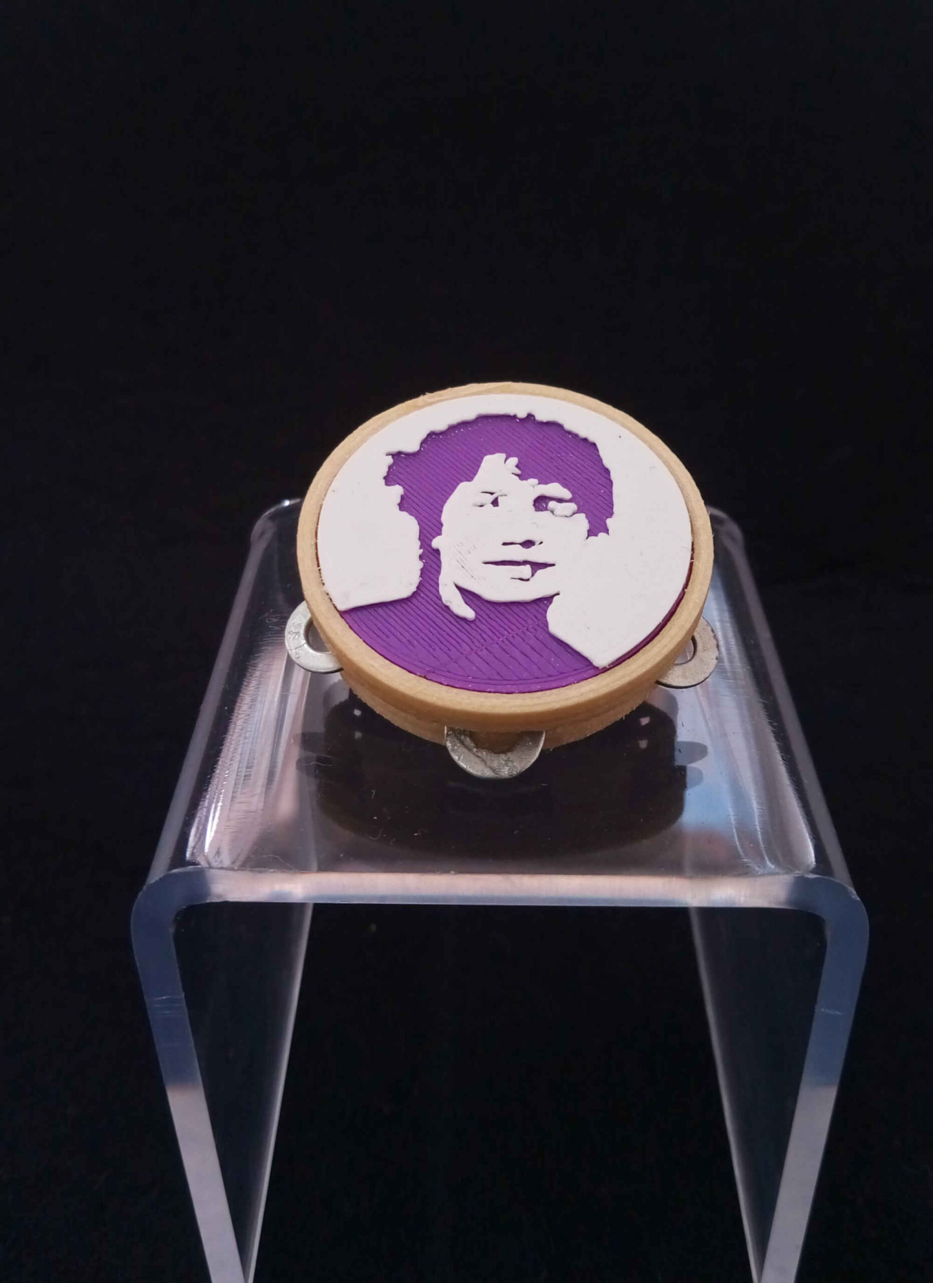 Deseñado pola equipa de Imprimetresde podes atopar este fermosísimo broche como dupla homenaxe á nosa poeta nacional, Rosalía de Castro, e á pandeireta, instrumento que constitúe a base da música tradicional galega. Pódela lucir en lila ou en negro. Asimesmo, dispón dunhas ferreñas metálicas que farán as delicias de calquer melóman@.