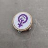 Broche Pandeireta Woman Power, deseñado pola equipa de Imprimetresde . Fermosísimo broche co símbolo feminista e con forma de pandeireta, instrumento que constitúe a base da música tradicional galega. Feita en cor lila, a cor da loita feminista. Asimesmo, dispón dunhas ferreñas metálicas que farán as delicias de calquer melóman@.
