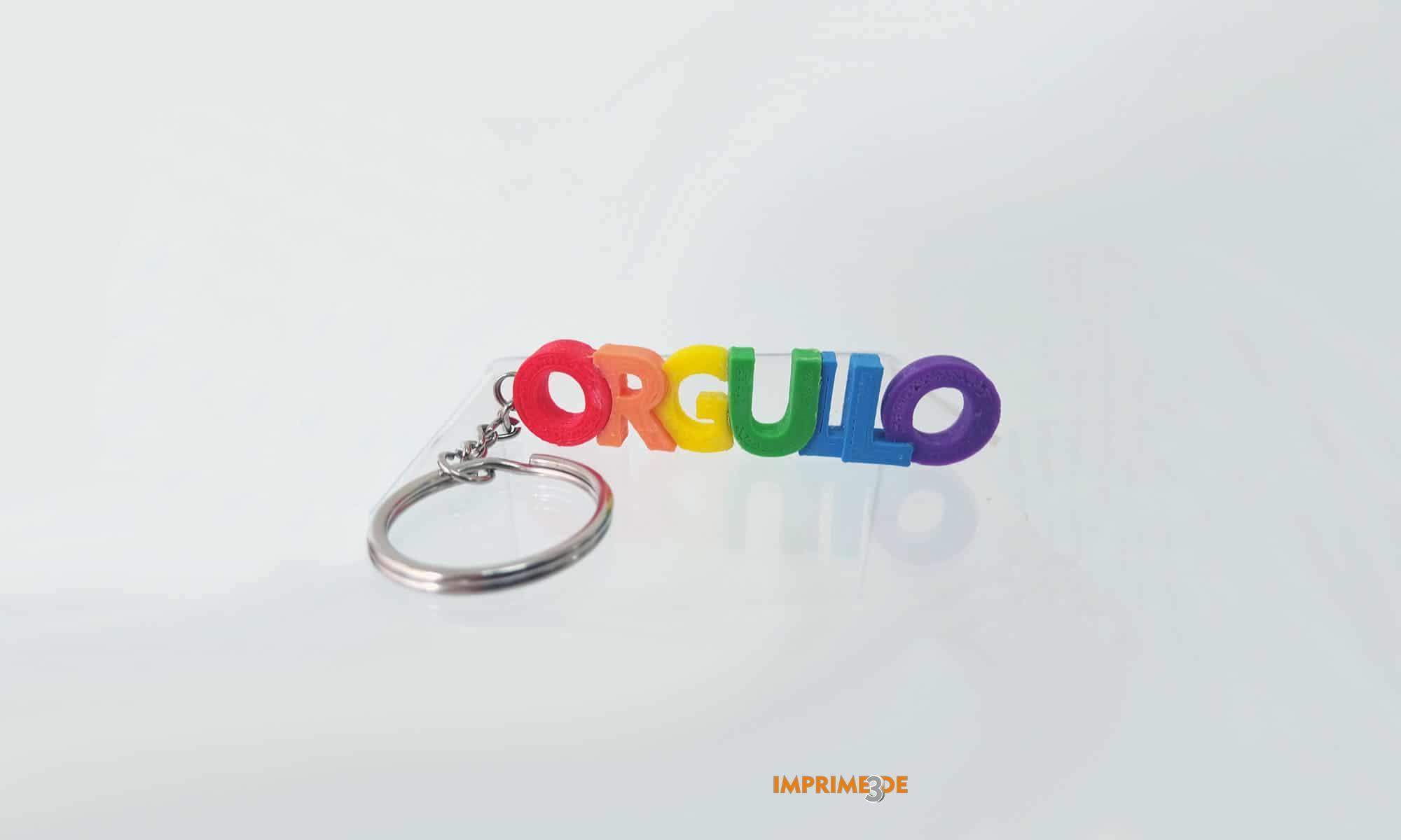 Chaveiro ORGULLO deseñado pola equipa Imprimetresde para visiblizar a loita do movimento LGBTI. Movimento social e político que loita contra a discriminación e a homofobia. Do mesmo xeito, está a favor da equiparación e recoñecemento de dereitos das persoas lesbianas, gais, bisexuais, transxéneros y transexuais.