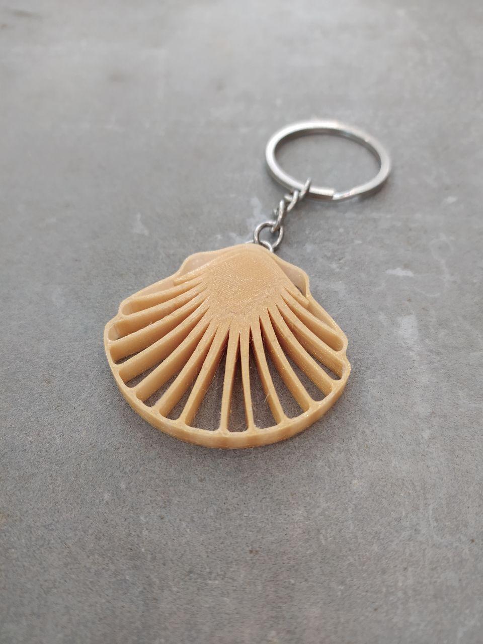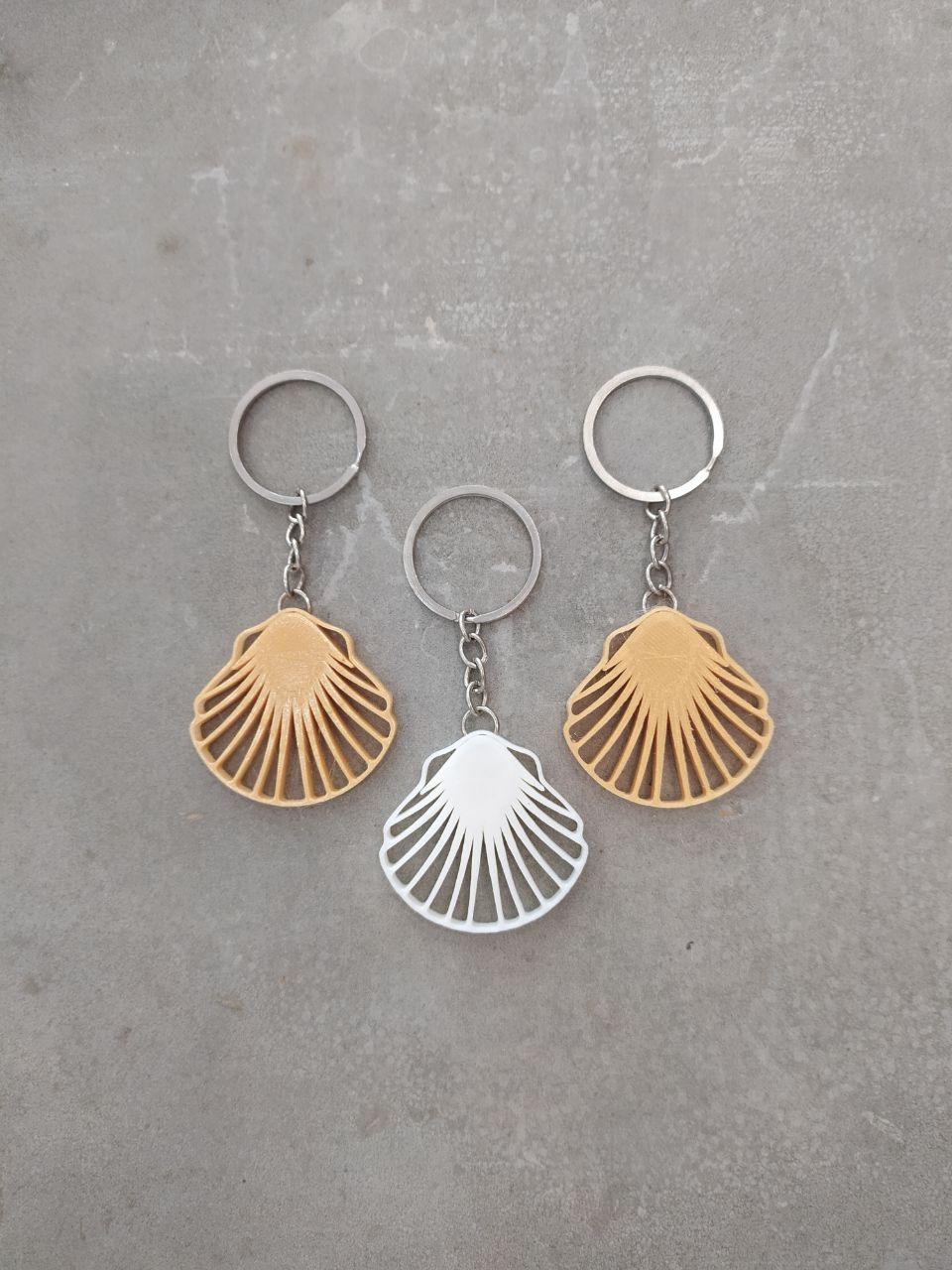 Chaveiro Vieira deseño orixinal de Imprimetresde. Chaveiro con moito estilo e en homenaxe á Vieira: A cuncha da vieira é o símbolo por excelencia do peregrino e da peregrina no Camiño de Santiago. A razón é que, ao ser típica das costas de Galicia, @s peregrin@s levábana ós seus lugares de orixe como proba de que chegaran até o final da viaxe. En realidade, Linneo deu o nome de Pecten jacobeus, ou cuncha de Santiago, á vieira do Mediterráneo, non á especie propia das costas atlánticas