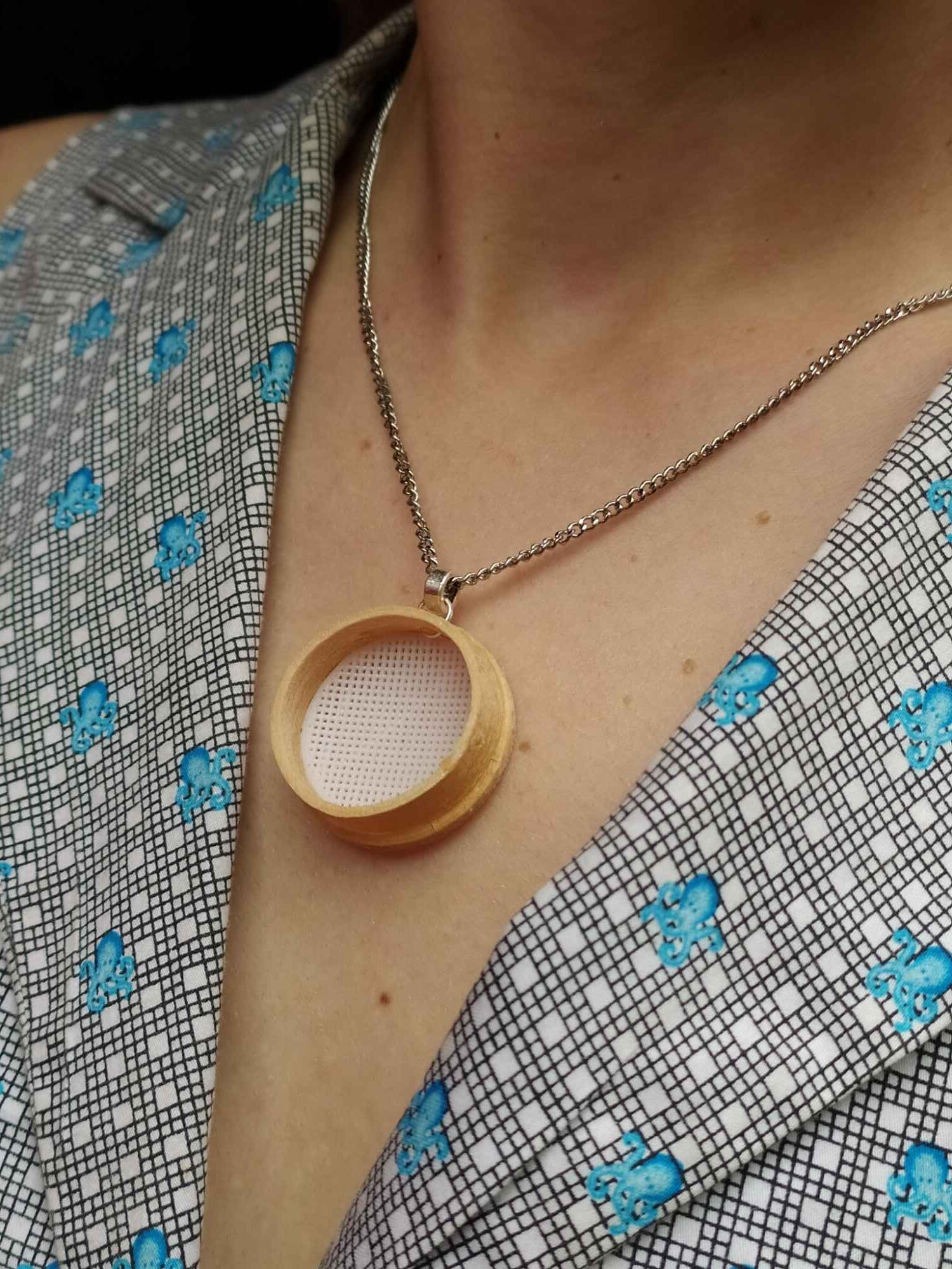 Colar Peneira deseñado por Imprimetresde . Fermoso colar en homenaxe á peneira tan típica dos lares galegos. A peneira é un instrumento formado tradicionalmente por unha caixa de madeira, con fondo de coiro con furados ou ben cunha rede de metal de malla máis ou menos fina, que se emprega para separar as partículas de distinto grosor que constitúen certas materias, como a fariña, a area etc.