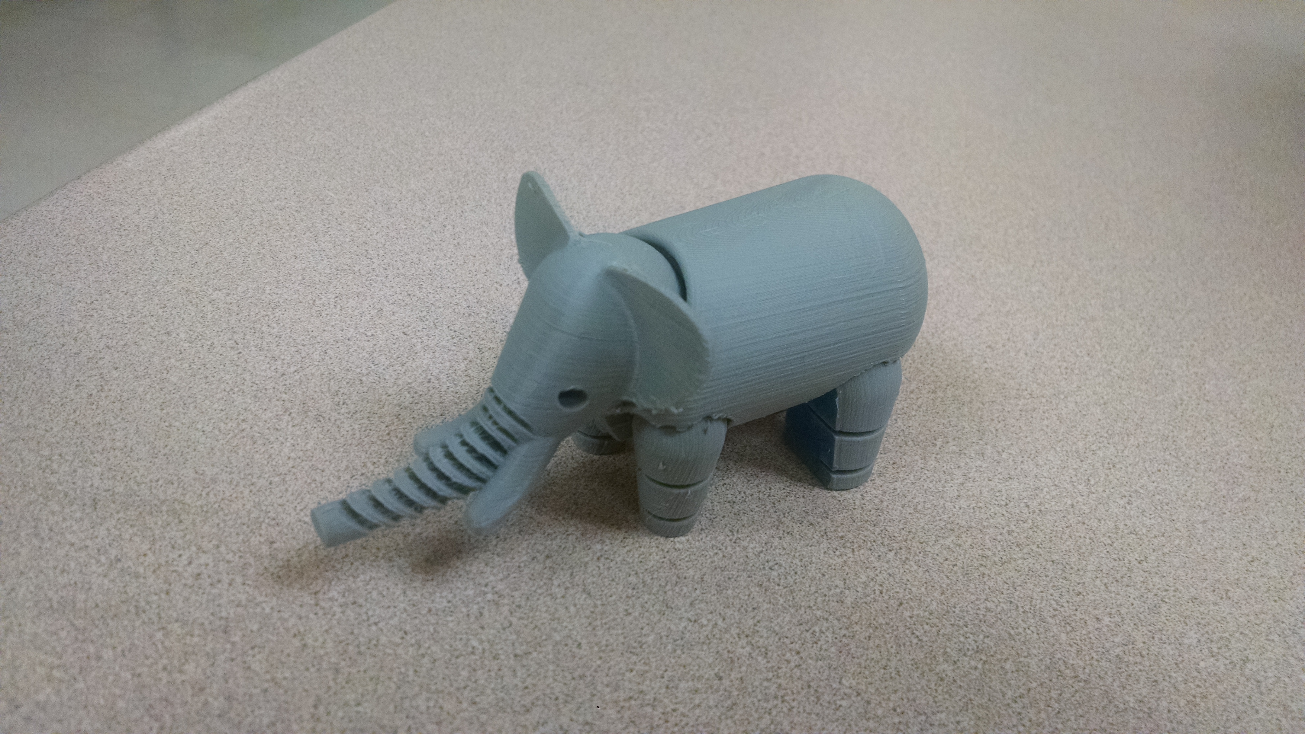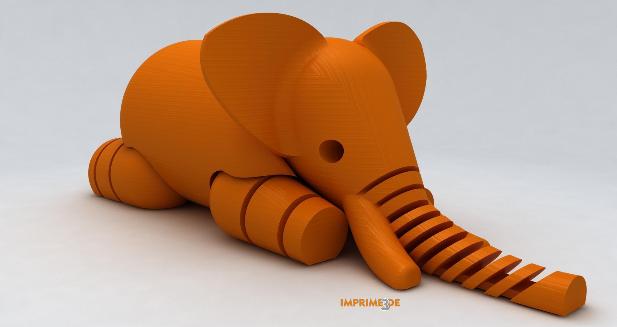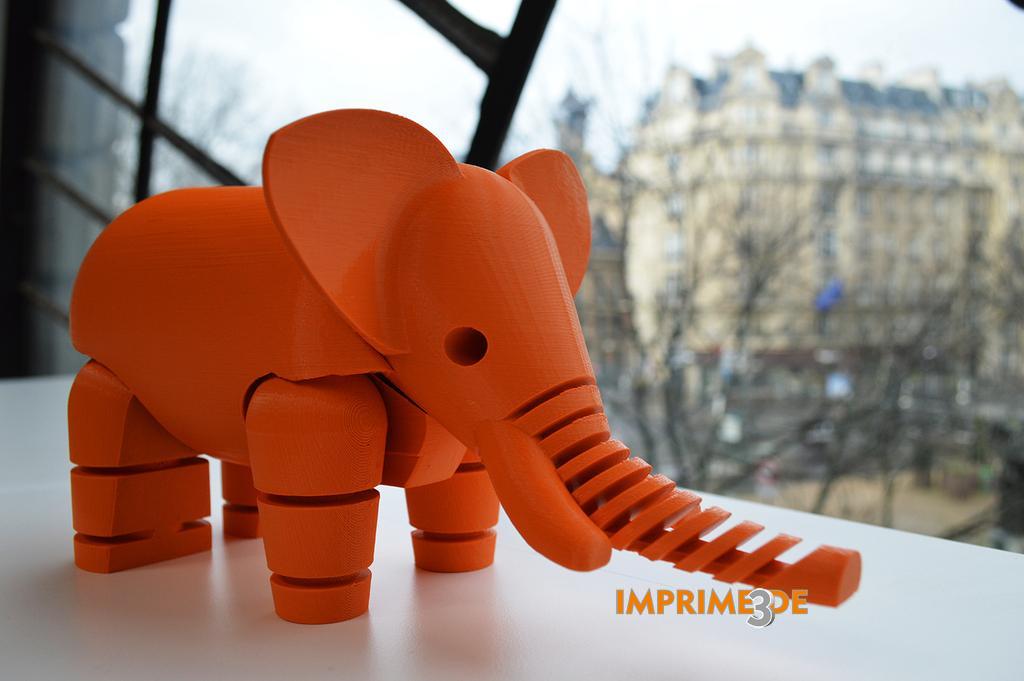 O estudio Le FABshop ven de crear este pequeno elefante articulado para os amigos do IRT Julio Verne de Nantes. Esta cidade é famosa polo seu carnaval e monicreques xigantes. O máis coñecido de eles é sen dúbida o gran elefante articulado do tamaño dun edificio. O seu director artístico, Samuel, decidiu deseñar e imprimir o elefante en 3D para agradecer ao IRT Julio Verne pola súa creación. Agora é un dos modelos para a impresión 3D máis descargados en Internet.