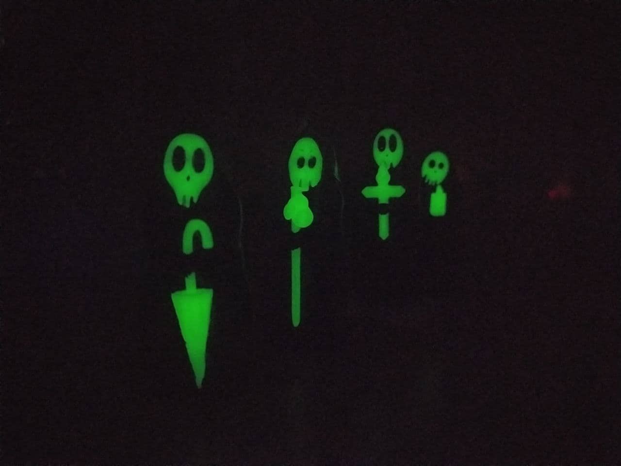 Mortiños da Santa Compaña, creación orixinal de I3D – Imprimetresde en homenaxe á crenza na procesión da  Santa Compaña. Feitos en PLA negro e PLA GLOW in the dark, ilumínanse na escuridade!