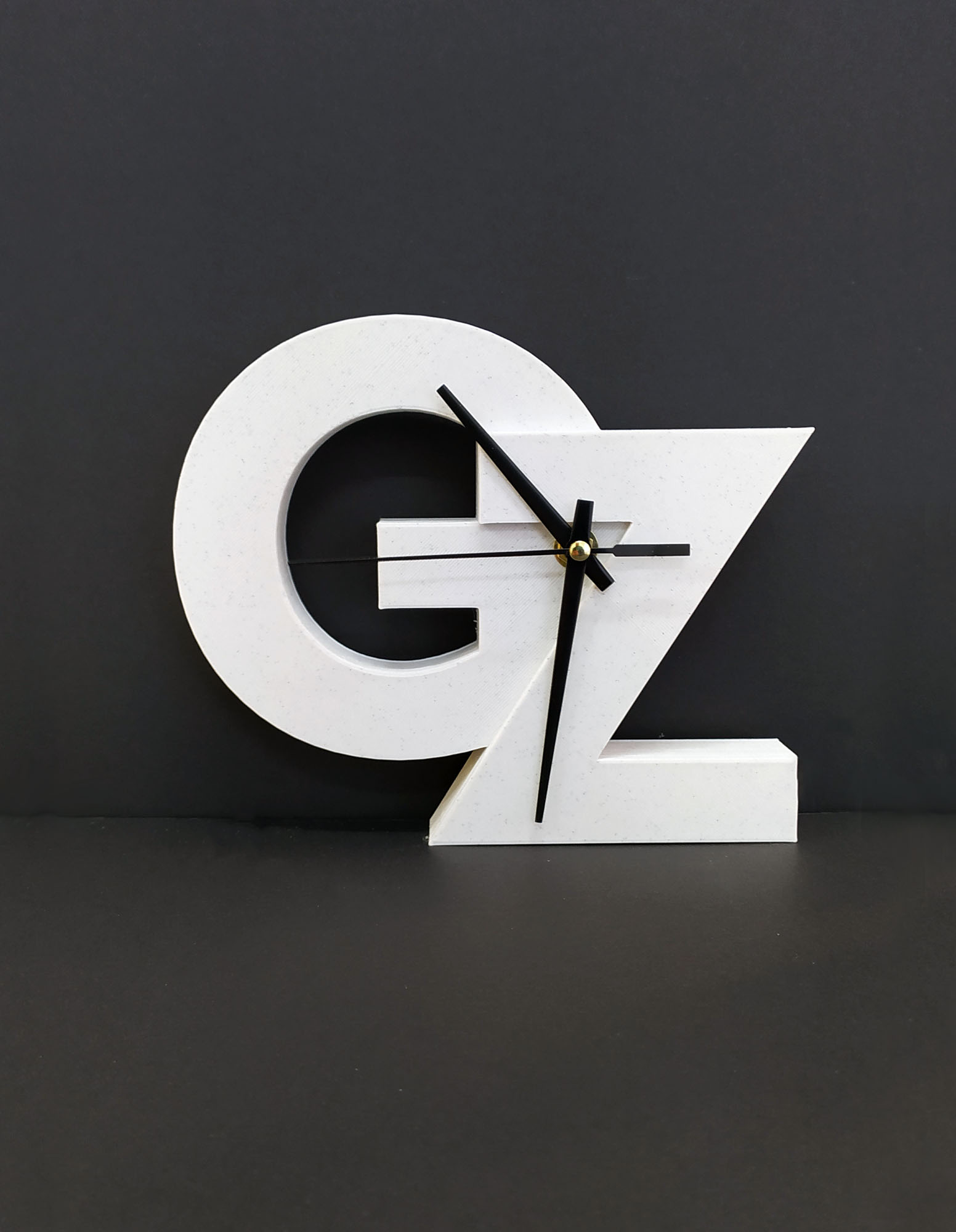 Reloxo GZ parede deseñado por Imprimetresde, en cor branca ou granito claro. As súas dimensións son 17cmx20cmx3cm, o que permite que poidas penduralo na parede ou colocalo elegantemente nunha repisa ou estantería da casa, da oficina … Tamén temos a dispor o tamaño mesiña de noite, 10x12x2,7 cm aprox.