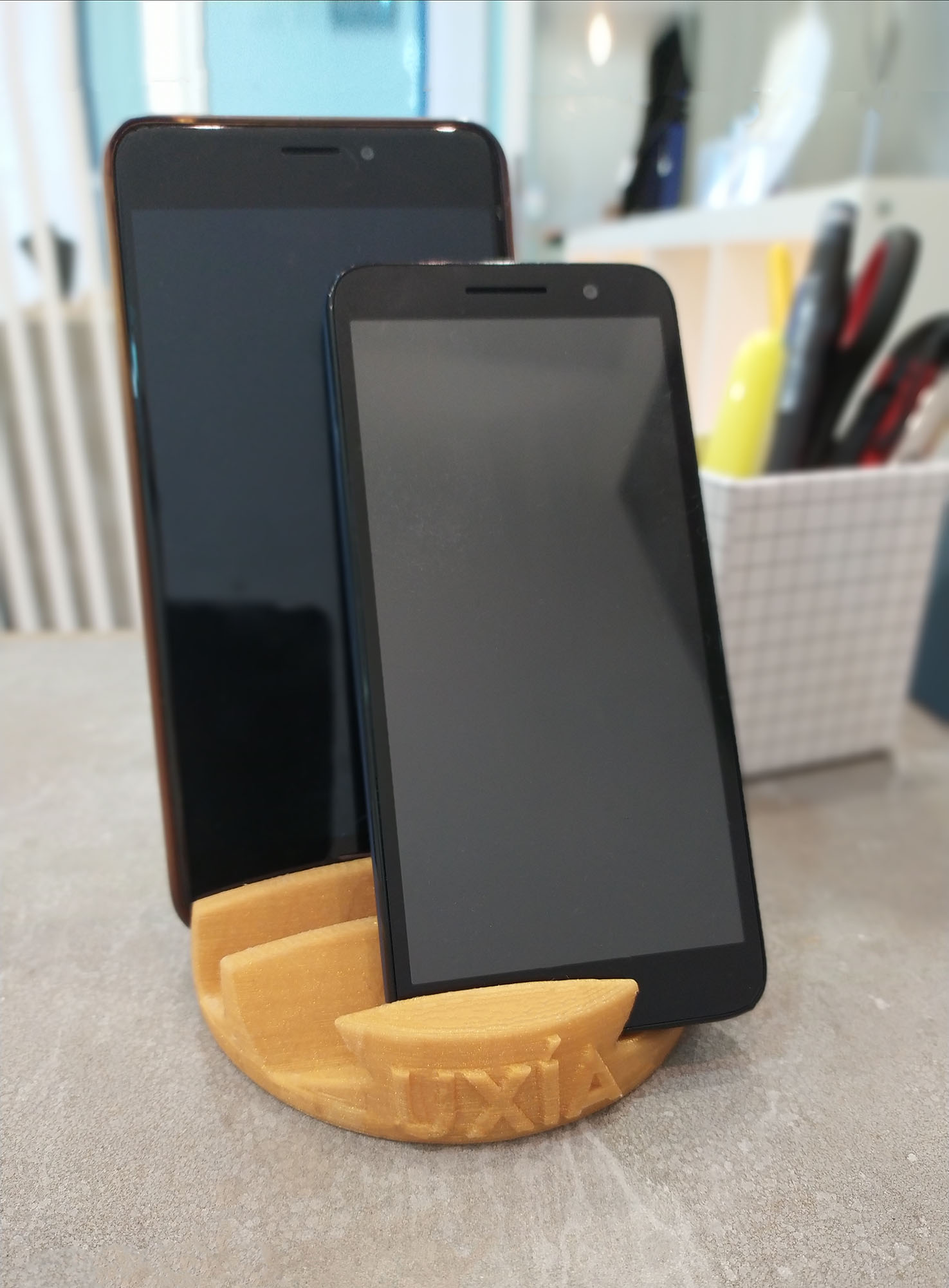 Soporte móbil 3 posicións deseñado por Imprimetresde que permite colocar calqueira modelo de smartphone ou tablet en tres posicións diferentes e en formato vertical ou apaisado. Pódense elixir cores e personalizalo.