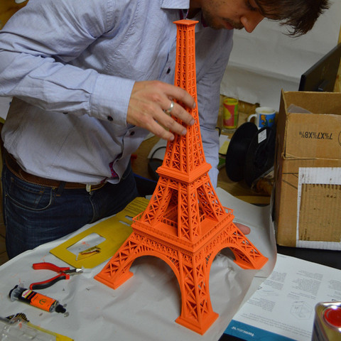 Deseño realizado polo estudo LeFabShop de París. O feito de que o seu estudo de deseño tivese a súa sede en París, é o motivo polo que absolutamente necesitaban realizar unha Torre Eiffel. Así que, por que non facer algo grande, como le FabShop?. Grazas á creación de B9, que xa deseñara unha, só tivo que utilizar Netfabb para cortar o seu modelo en 7 compoñentes principais e pegalas xunto con epoxi. É unha peza impresionante, con máis de 60 cm de altura, e que pode converterse no elemento crave de calquera estancia, xerando por se soa un ambiente evocador da grandiosidade da capital francesa.