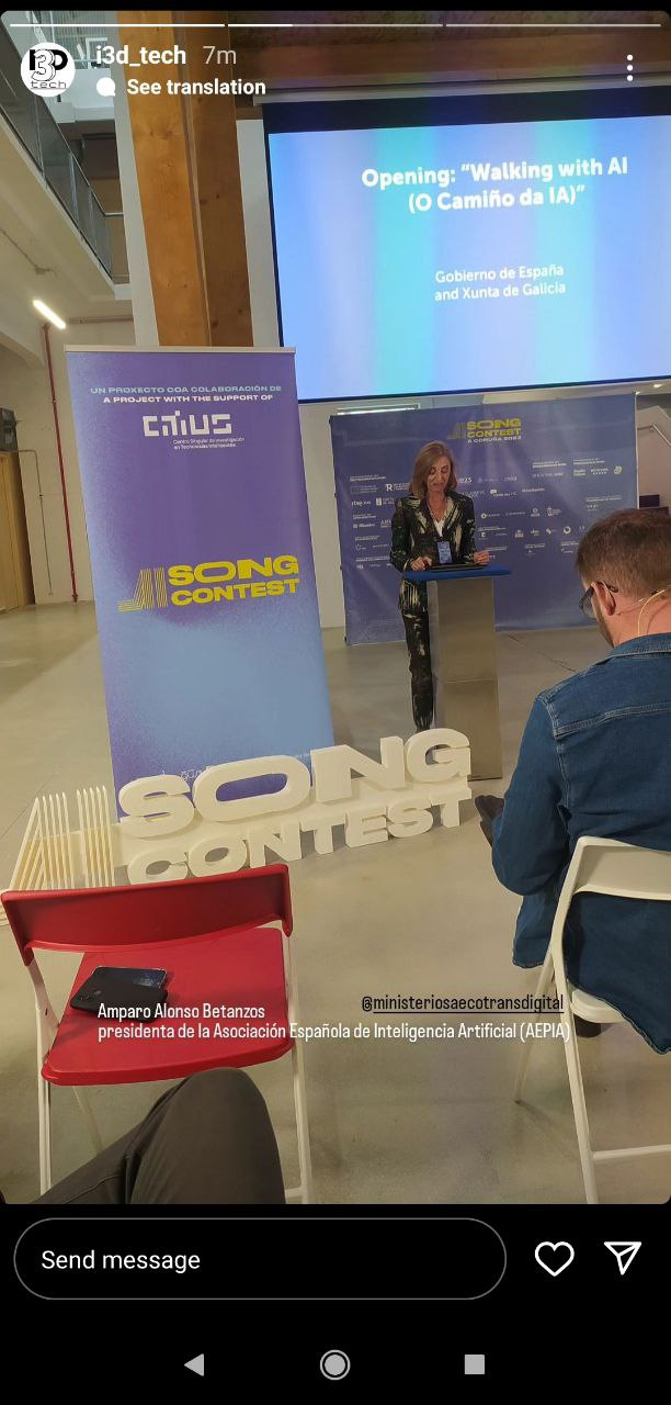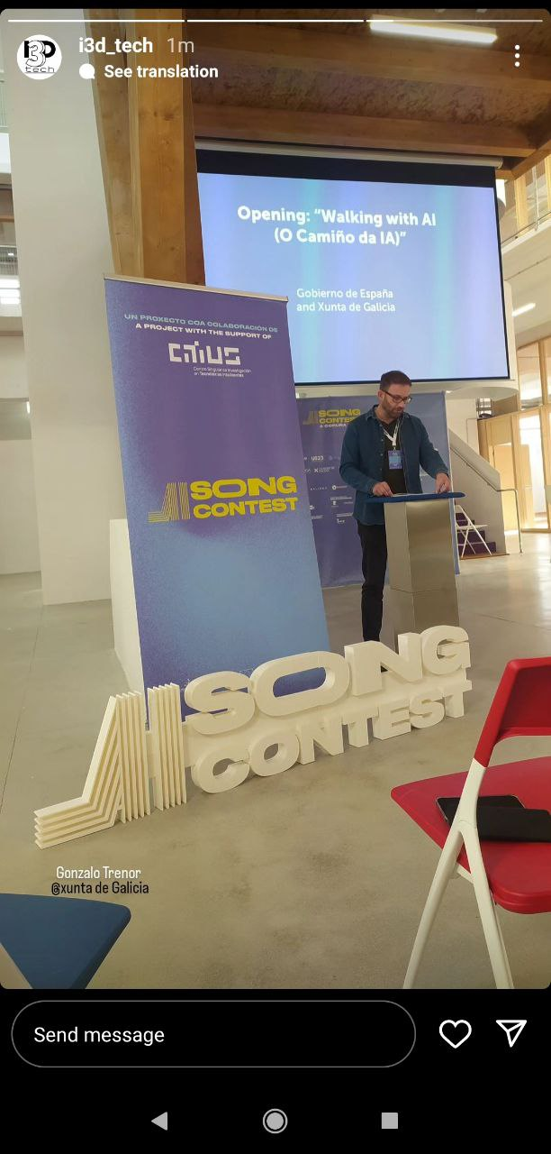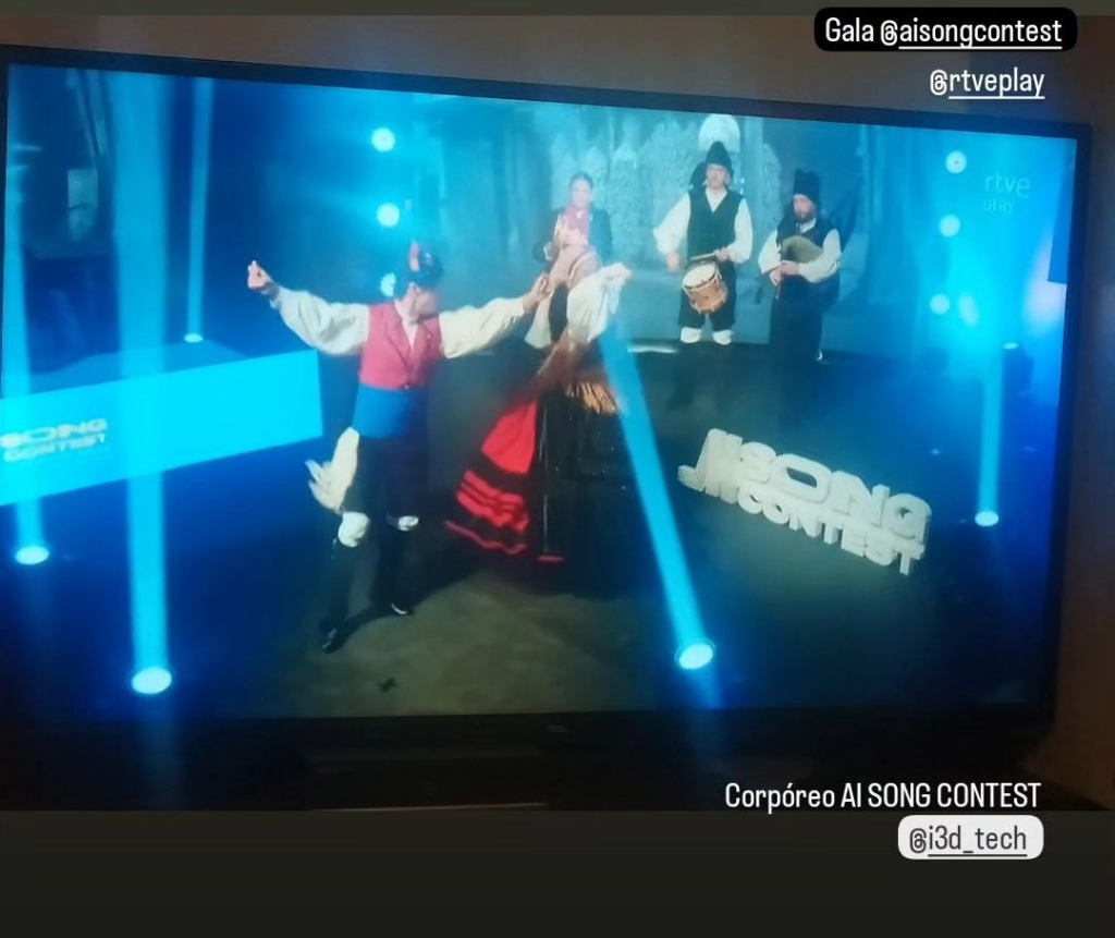 El Festival Mundial de la Canción de Inteligencia Artificial, AI SONG CONTEST, celebró su 4ª edición en la Cidade das TIC de A Coruña y por la noche se emitió en directo la gala de la final por el canal online de RTVE, Rtve Play, desde el plató de Studio Follow. Hasta allí viajó también el corpóreo AI SONG CONTEST diseñado e impreso en 3D por I3DTech. Aqui lo vemos en el centro del escenario.