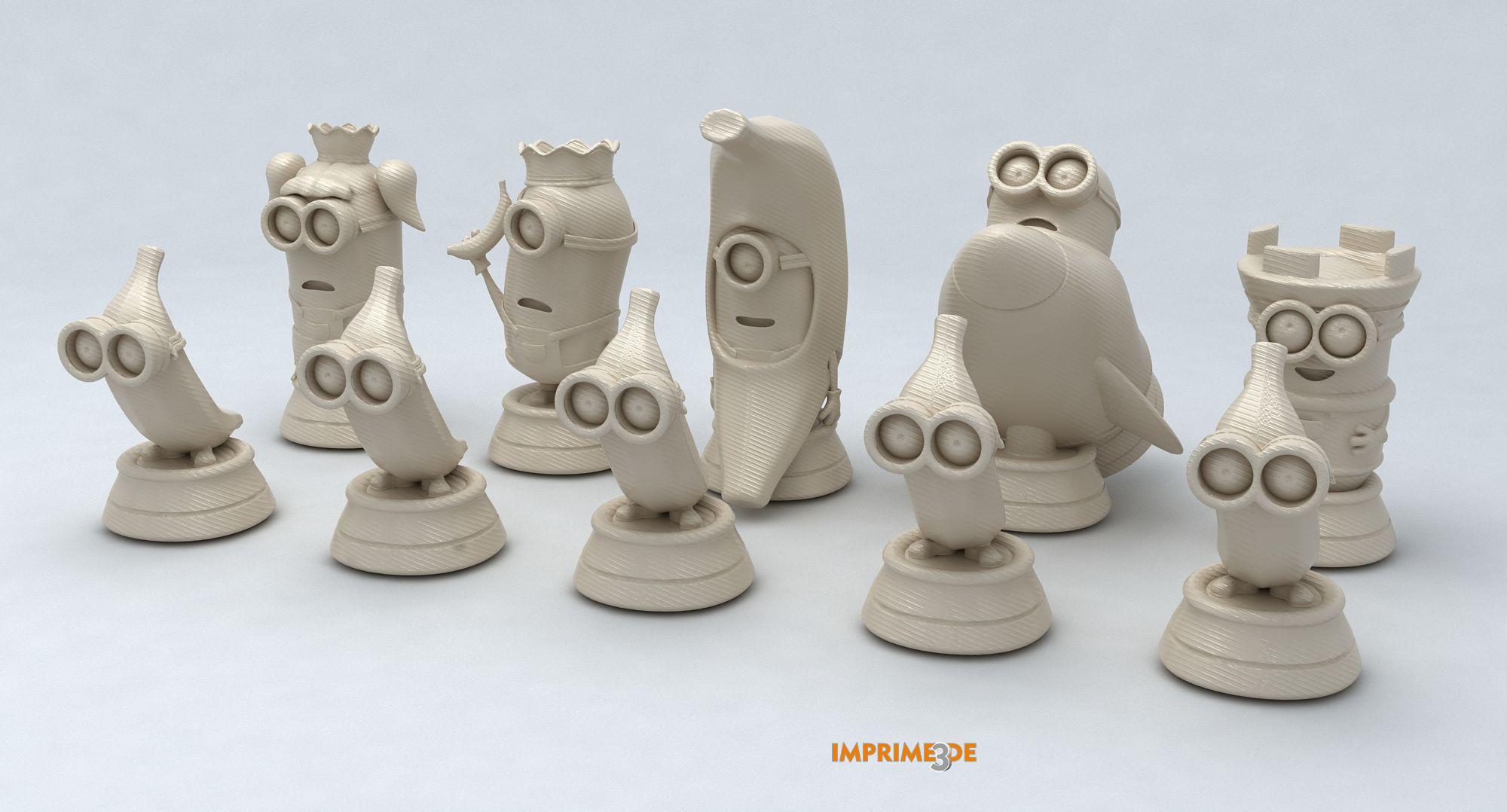 Este juego está inspirado en los personajes de las películas de “Gru, mi villano favorito”, uniendo su amor por las BANANAS con su deseo de dominar el mundo en este pequeño e increíble juego de ajedrez, diseñado por Simons 3d Druck Shop.