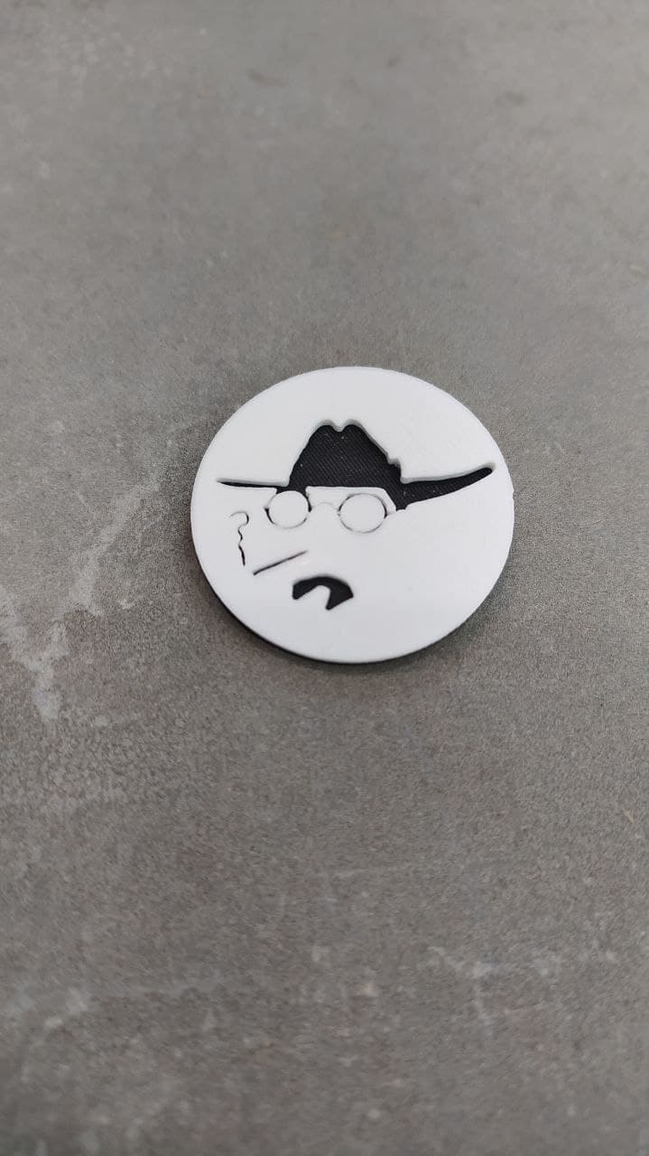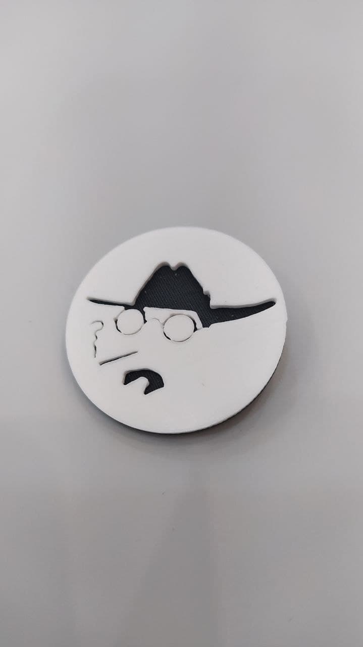 Broche Castelao, diseño de Imprimetresde, basado en un deseño del propio Daniel A. Rodríguez Castelao sobre a su imagen: “Autocaricatura” de 1914. Nacido en Rianxo el 29 de xaneiro[1] de 1886 y fallecido en el exilio en Buenos Aires (Arxentina) el 7 de enero de 1950, está considerado el Padre del nacionalismo galego.