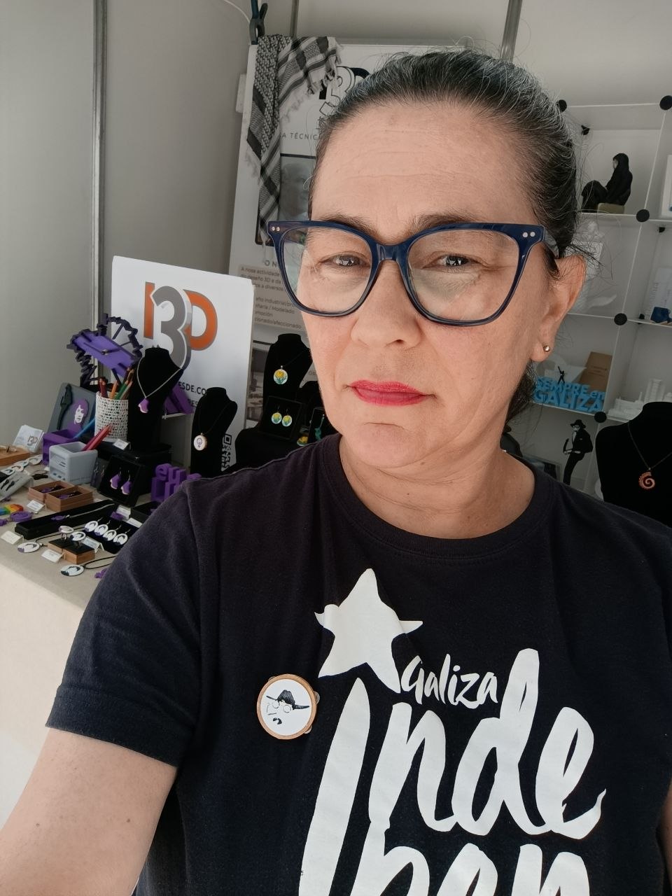 Broche Pandereta Castelao, diseño de Imprimetresde, basado en un diseño del propio Daniel A. Rodríguez Castelao sobre su imagen. En este caso le incorporamos nuestra querida pandereta. Tremendo combo!