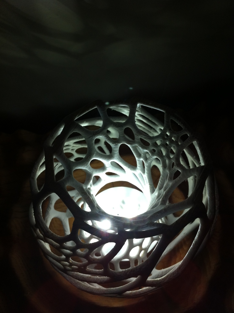 Cellular Lamp. Diseñada por el estudio n-e-r-v-o-u-s system, presentamos la pantalla para lámpara Cellular, un escultural diseño orgánico que puede ser empleado como pantalla para una lámpara LED o como un elemento escultórico decorativo para cualquier ambiente. Formas orgánicas basadas en algoritmos computerizados para una pieza cuya singurlaridad radica en el hecho de que emula las formas de la naturaleza sintetizadas e impresas por medios tecnológicos.