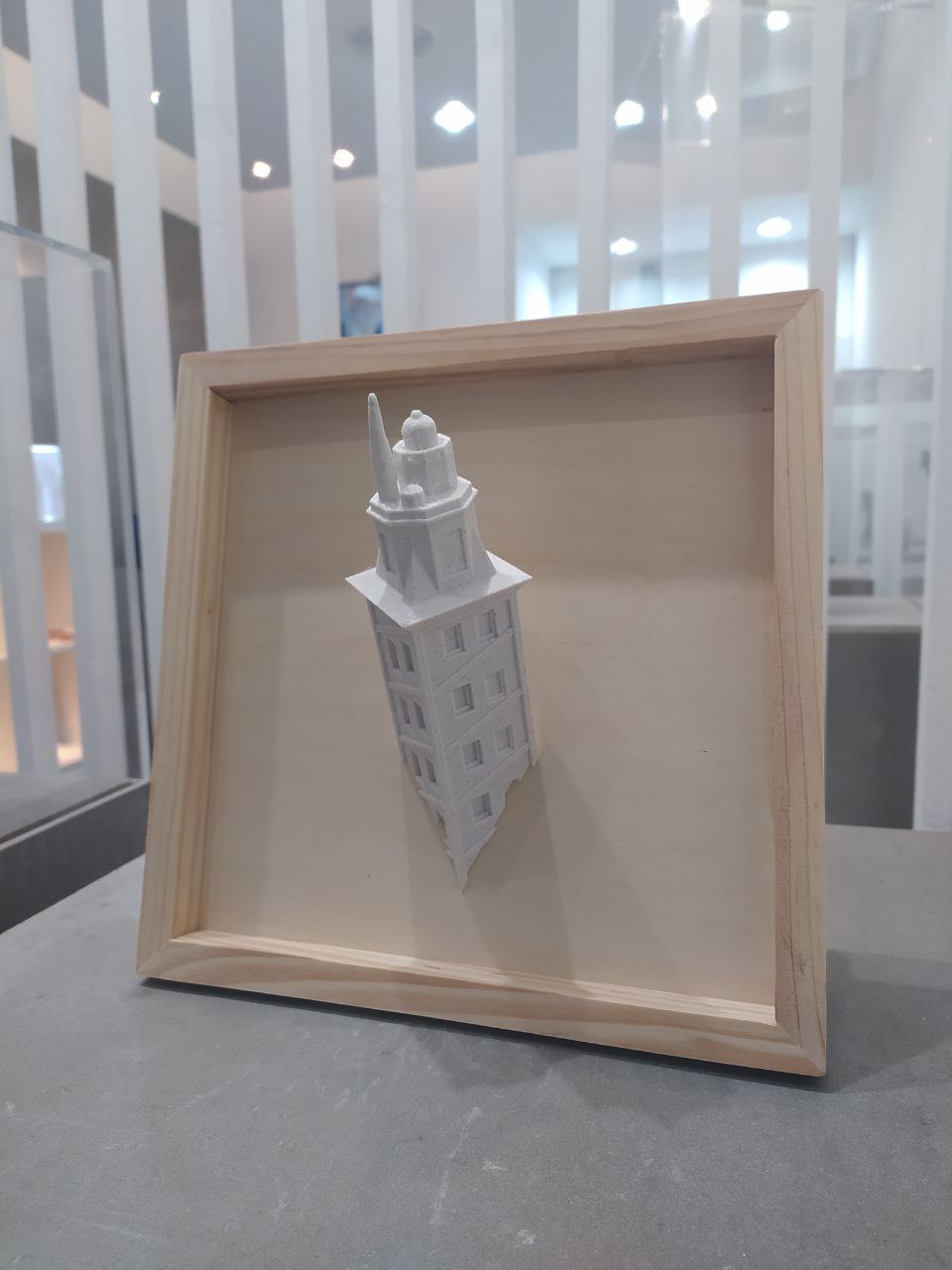 Escultura Torre de Hércules, creación original de I3D. Elegantísima escultura en PLA granito claro del monumento más emblemático de la ciudad de A Coruña declarado Patrimonio de la Humanidad en 2009. La figura de la Torre de Hércules va dentro de un marco de madera tamaño 25x25cm que lucirá en cualquier pared de tu casa, oficina o lugar de trabajo.