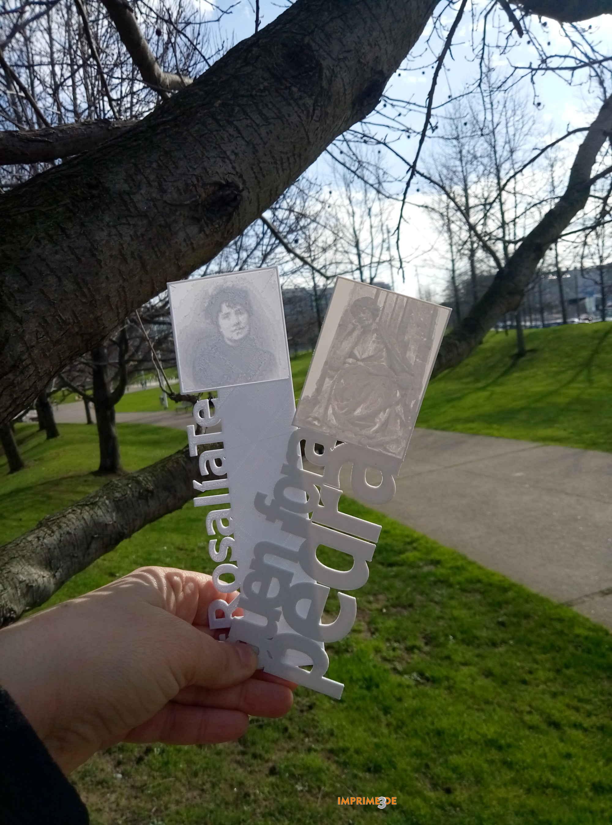 Marcapáginas Quen Fora Pedra. Elegante MARCAPÁGINAS con la imagen de la estatua que Rosalía de Castro tiene en la Alameda de Compostela, para conmemorar el centenario de dicha estatua. Esto lo convierte en el complemento perfecto para el regalo del 24F Día de Rosalía . Regala el Marcapáginas Quen Fora Pedra! Fabricado en PLA blanco con formato litofanía.