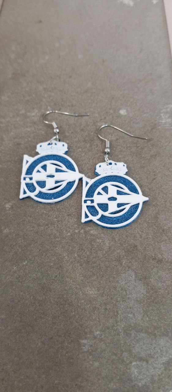 Pendientes Dépor. Originales pendientes inspirados y en homenaje al equipo del Real Clube Deportivo da Coruña. En azul y blanco, sus colores son ideales para ti o para regalar! Enganches en acero quirúrgico.