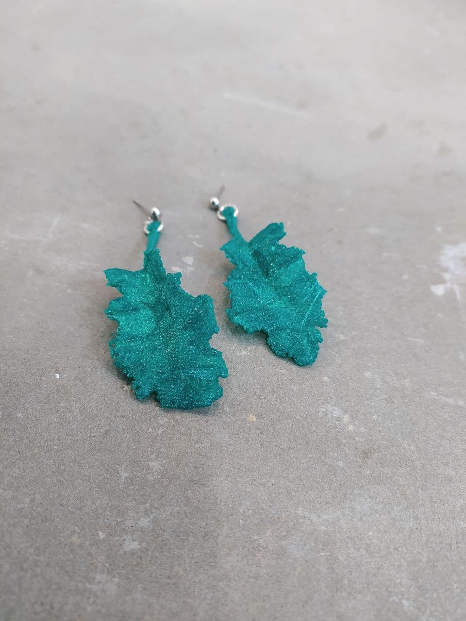 Pendientes Grelos diseñados por Imprimetresde. Originales pendientes de grelos, uno de los ingredientes más delicioso e más querido de nuestro caldo y que nuestra poeta nacional, Rosalía de Castro elevó a la categoría de manjar.