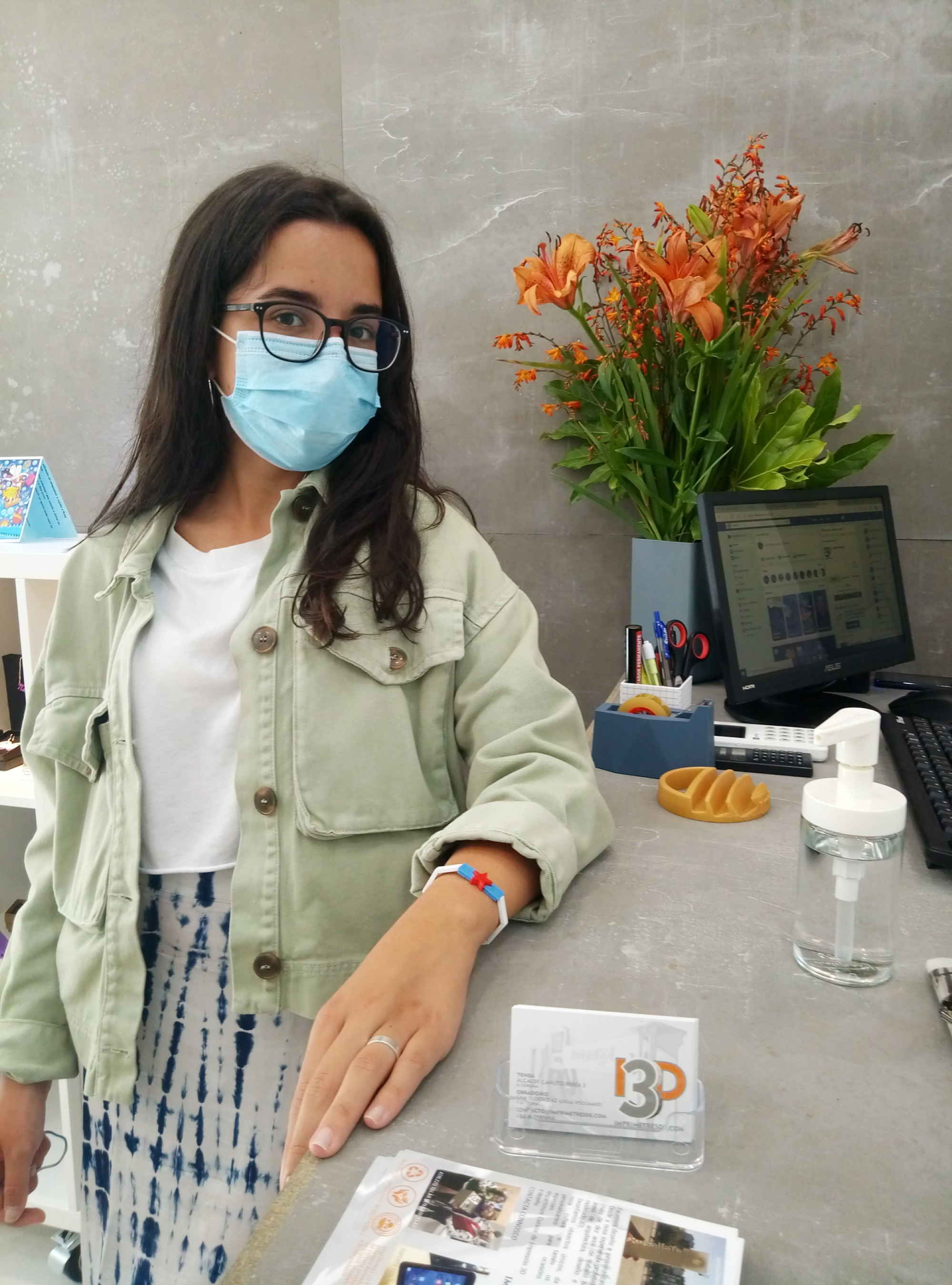 Pulsera da Patria. Diseño único y original de Imprimetresde basado en los colores de la Estreleira o bandeira da Patria, que simboliza la lucha por la independencia de Galiza. Es la bandera gallega con una estrela vermella de cinco puntas en el centro, que significa independencia y socialismo. Está formada por varias piezas blancas (6, 7 u 8 según el tamaño), dos azules y la estrella en rojo, todas ellas unidas con una goma elástica. Es muy cómoda de poner  y quitar ya que no lleva cierre.