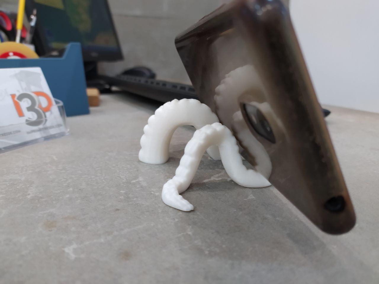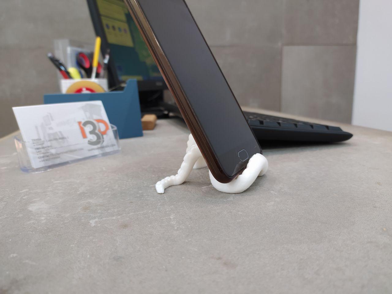 Soporte móvil Pulpo diseñado por Imprimetresde que permite colocar cualquier modelo de smartphone o tablet en formato vertical o apaisado. Un pequeño homenaje a nuestro cefalópodo favorito, el pulpo (polbo)